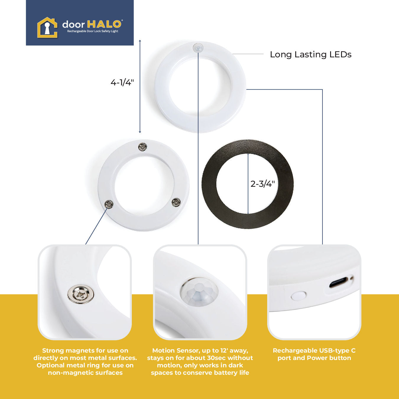 It is portable to allow for easy charging, to be used as a portable safety light device - taking the dog for a walk just got easier and brighter. Running to the car to grab groceries-grab your trusty door light